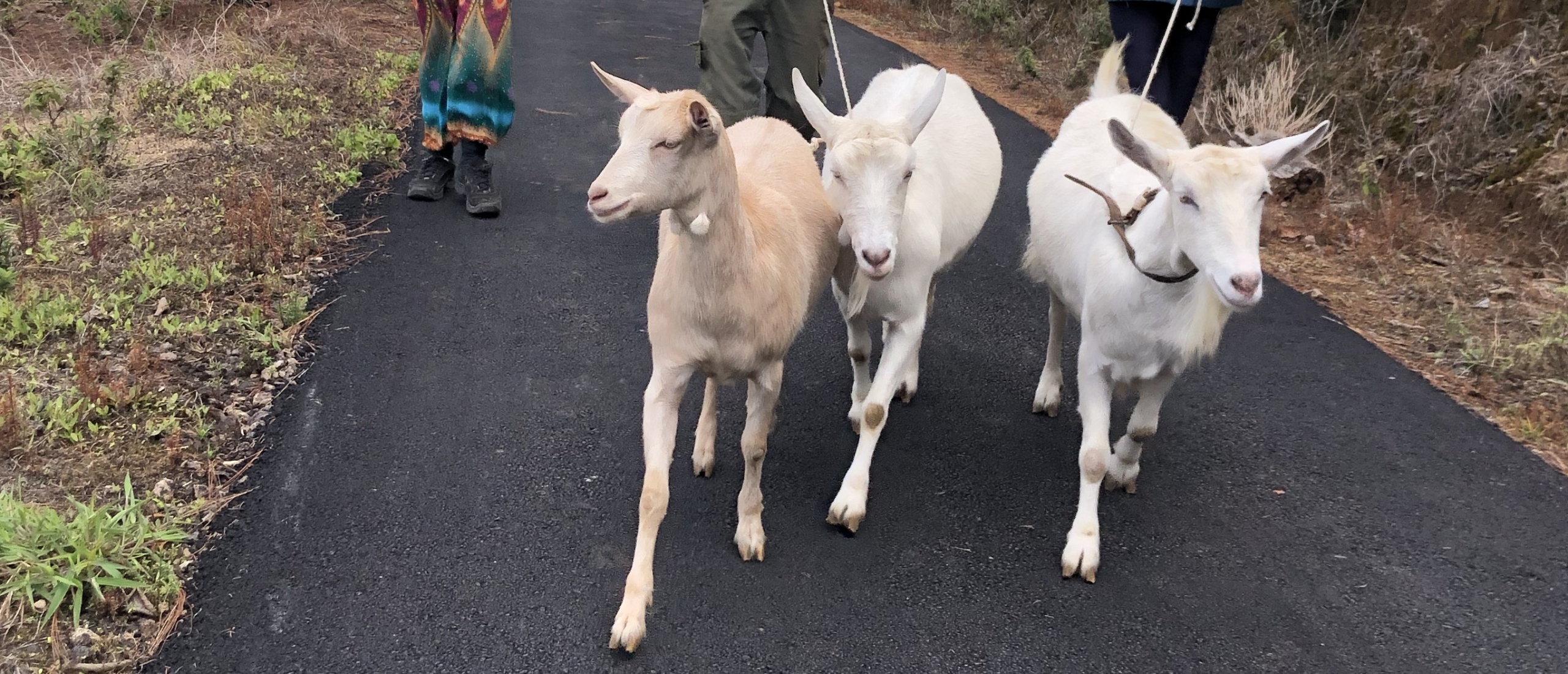 Recently, the cows sneakily broke through the vegetation and found their way into Jo and Si's garden. That's not the intention; all sorts of organic vegetables are grown there. To protect the garden, it's essential that the wild, rough, dense vegetation also be fenced. This means Arturo cuts poles from the forest with an axe. No native trees are felled, but only a type of birch. He looks at the size and height of the tree and estimates which way it will fall. Then a point is added to the tree, and the tree is moved to the spot where it will enter the ground. Quite a few trees have been felled, and according to Alida, the trees coöperate. She walks in and out of the jungle with a pole on her shoulder. Then, barbed wire is carefully unrolled and stapled to the trunks. We leave the jungle unscathed.