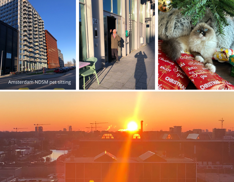 We celebrate Christmas with our children in Amsterdam North on the ninth floor while looking after Babette the cat. Tourists in our own city. At this height, we see the sun rise and set several times. Once, it seems as if the sun rises in exactly the same place as it sets, a special moment in the year. During the winter solstice on December 21, the sun is at its lowest point in the sky. For three days, it seems as if the sun is ‘standing still’. In the era of the birth of the Christ Child, this was interpreted as the birth of light. Because the winter solstice took place on December 25 in the constellation Virgo, light reappeared in this astrological sign, the true immaculate conception. The three kings are the three stars in Orion's belt that were aligned with the sunrise at that time. In many mythologies, the winter solstice is interpreted as the death and resurrection of a divine figure. There are sacred stories around the world that correspond to the story of Christ, but that aside. It gave us a special feeling to witness the solstice with our own eyes and let its meaning sink in.