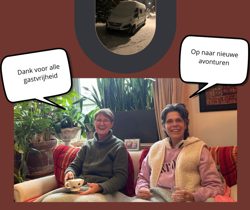 Deze ‘in between tijd’ bestaat uit het bezoeken van familie en vrienden en het ophalen van onze camperbus. We logeren in Amsterdam, in Bleiswijk, in Laren, in Steenbergen en een nachtje in Tersoal – Friesland.