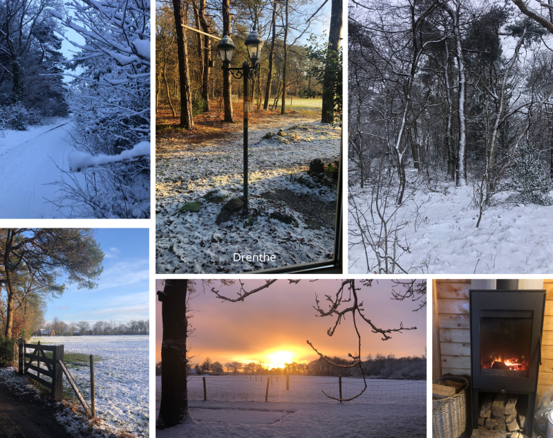 Just before the New Year, we are able to spend a week at our friends' cottage in Steenbergen. We receive a wonderful gift: SNOW. A few days of beautiful white snow everywhere. The landscape is transformed into a fairy tale. You couldn't feel more wintery, in the middle of the woods with snow covering every branch. We go on fantastic walks and enjoy ourselves to the fullest.