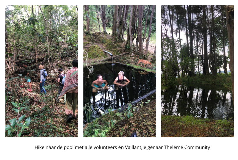In the weekends we rest and do fun things. This time we walk with Vaillant through the forest to a pool. Theleme borders the Bosque de Nino National Park. You actually have to pay to enter, but because he knows the way, we walk quietly and silent through the park so as not to attract attention. In Costa Rica, almost all the land is privately owned. After walking for about 20 minutes, we arrive at a pool where water flows in from the mountain. The water is cold. Vaillant goes into the water first, followed by Lida. They sit together meditatively, bathing in peace. The dog Galleta is with us, but she doesn't feel like a dip and walks around us all in a wide arc.