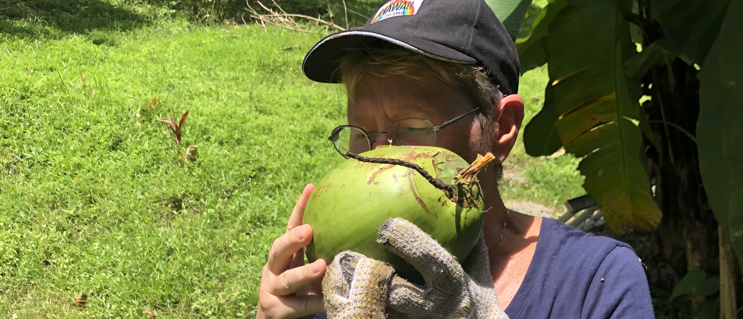 Yule en Stefan zijn bezig met loodgieterswerk. Om het toilet van het guesthouse op een andere tank aan te sluiten worden nieuwe afvoerpijpen aangelegd. Deze buizen lopen voor het huis langs en aan ons de schone taak om zand te scheppen en de pijpen hiermee te bedekken. Een hardwerkend en pittig klusje. Kruiwagen vol nat zand scheppen, naar beneden kruien, lossen en weer omhoog voor een nieuwe lading zand. Gabrielle zorgt voor het dichten van de geul, Lida schept en kruit vooral. Na twee dagen en 25 kruiwagens is de klus nog niet geklaard. Omdat het onze laatste week is krijgen we vrijdag vrij wat betekent dat Yule en Stefan de klus zullen afmaken.
